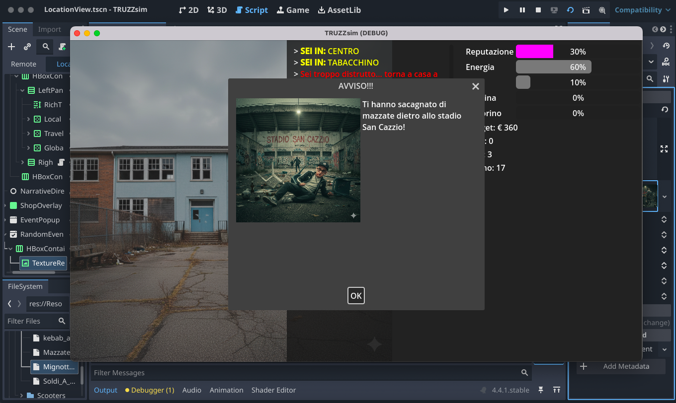 Benvenuti nel simulatore di vita quotidiana più ignorante di sempre. Maranzanator v0.1 è un ritorno alle origini: niente grafica 3D spaziale, solo tasti, statistiche e tanta, tantissima strada.